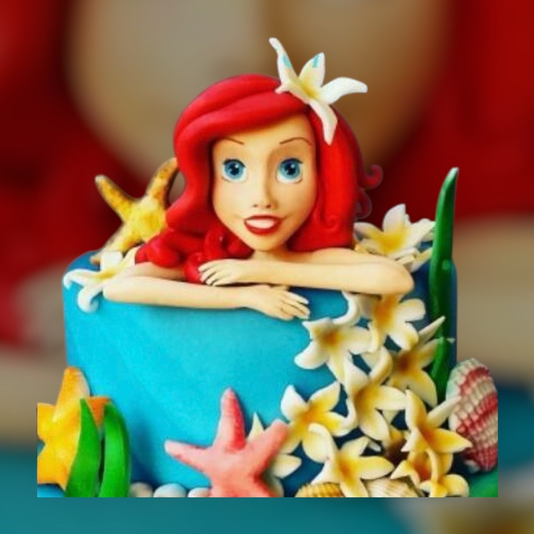 Si realizza il progetto della foto, la Sirenetta, e dettagli marini vari. Colorazione della pasta di zucchero effetto mare.